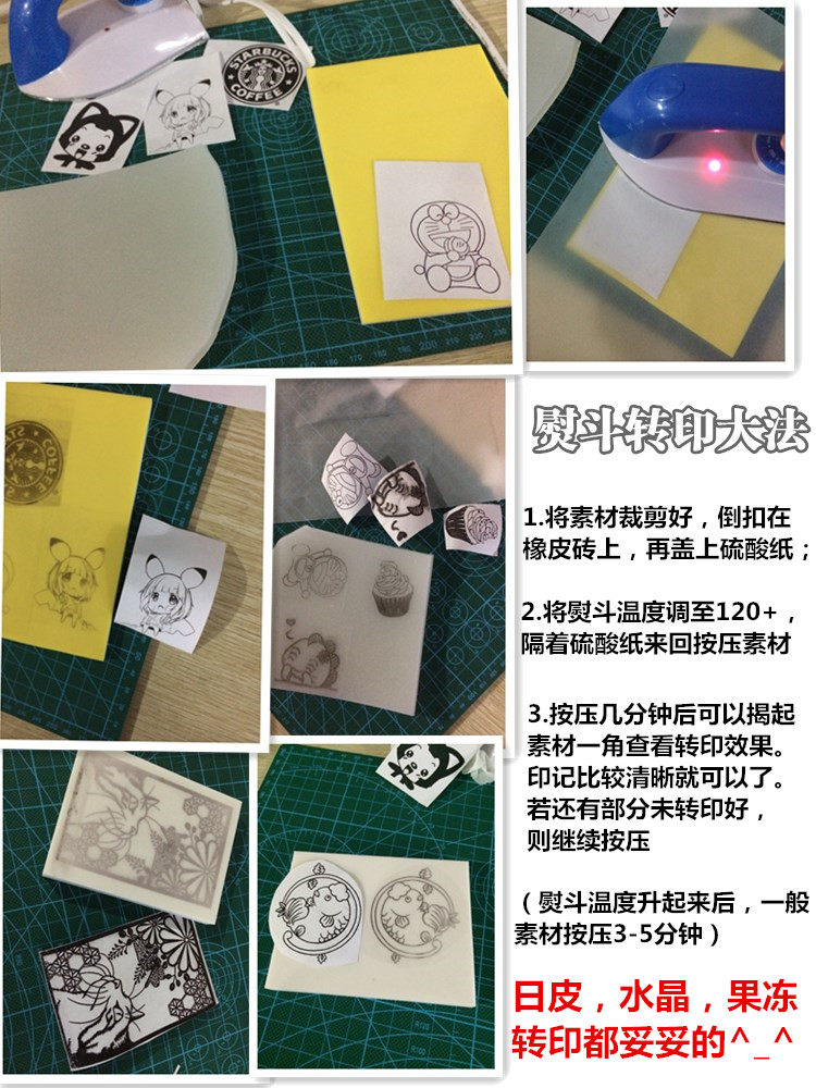 水晶,果凍和日皮等可以用熨斗轉印,轉印教程如下: