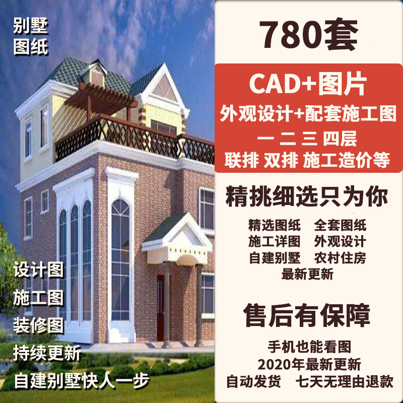 房子設(shè)計圖農(nóng)村自建房二層半三層雙拼鄉(xiāng)村小戶型別墅CAD施工圖紙價格行情