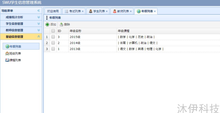 基礎信息管理:年級、班級、課程信息管理: