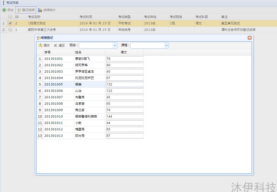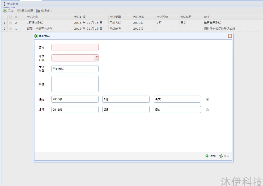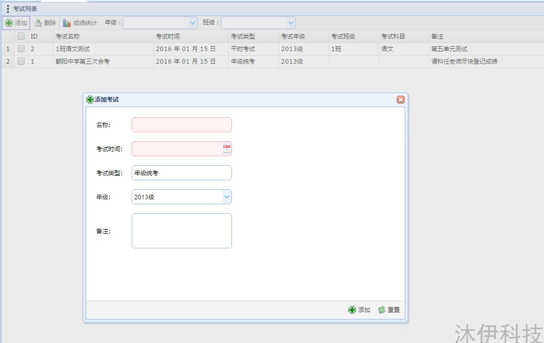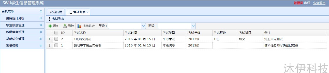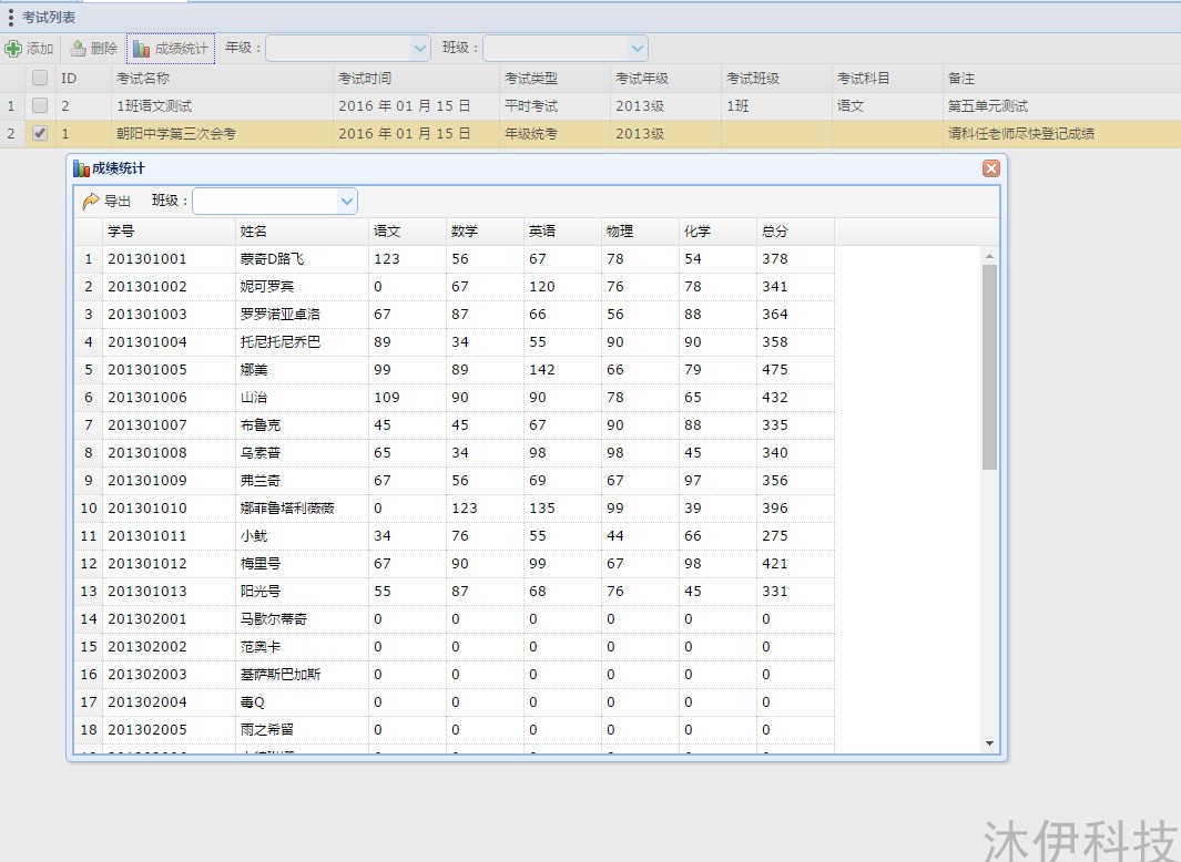 成績統(tǒng)計分析:包含添加考試、成績統(tǒng)計(可導出成Excel表格):