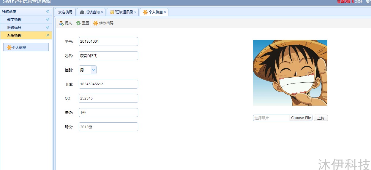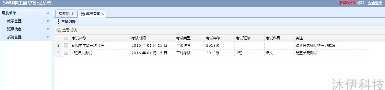 接下來我們按照學生的角色登錄系統(tǒng),我們選一個學生,學號1,密碼都是默認111111 學生主要功能是成績查詢、班級通訊錄、個人信息修改。