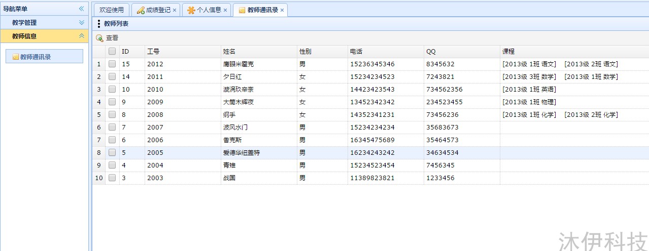 教師信息管理:教師信息查看、修改、刪除: