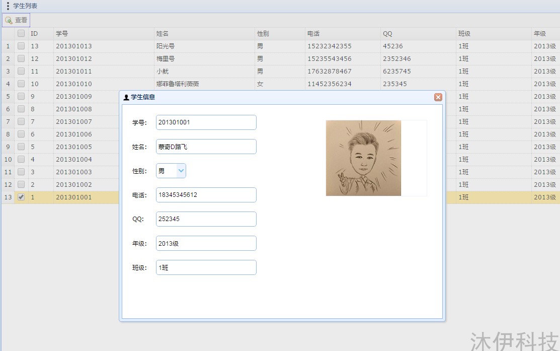 學生信息管理:學生信息添加、修改刪除、查看: