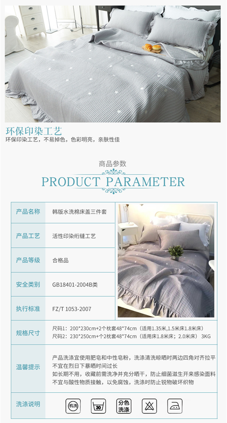 韓國床蓋水洗絎縫被三件套夏涼被單件夾棉衍縫被蓋空調(diào)被歐式床單推廣熱賣行情