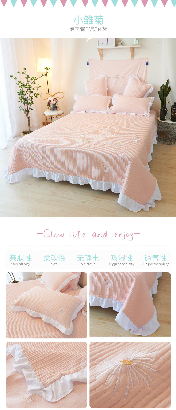 四季可用,絎線均勻細(xì)密,確保多次洗滌不跑棉不變形,不褪色,不縮水,可直接機(jī)洗,打理方便