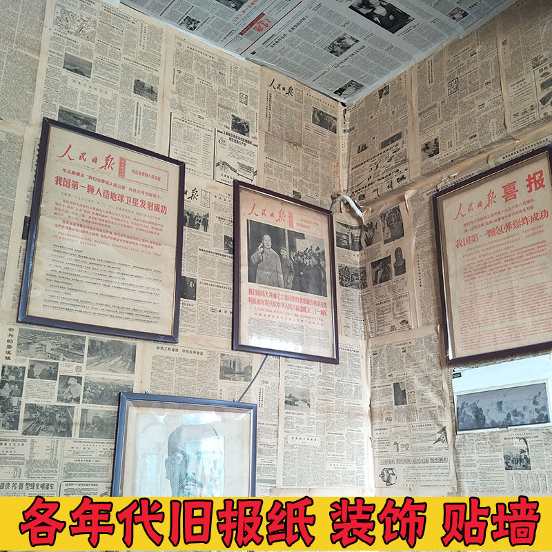 50 60 70 8090年代廢舊報紙英文原版裝飾貼糊墻發(fā)黃裝修老報紙