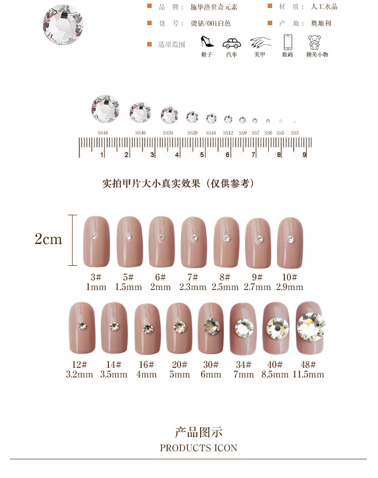 烫钻001白色美甲钻奥钻服饰舞蹈服贴钻散钻采用奥地利施华洛水晶