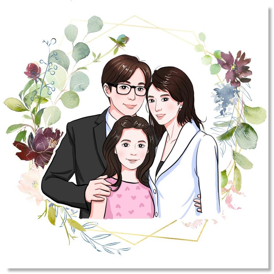 手繪親子全家福頭像定制蠟筆真人照片轉(zhuǎn)漫畫Q版卡通微信簡(jiǎn)筆設(shè)計(jì)