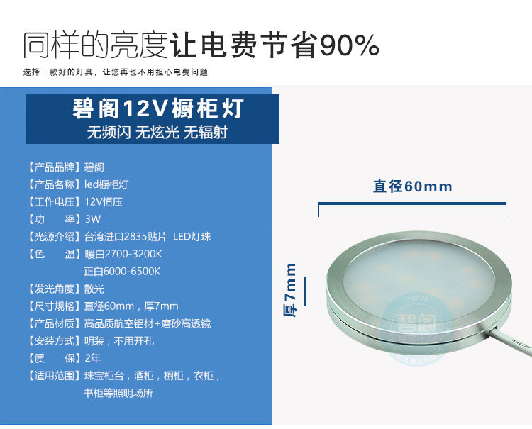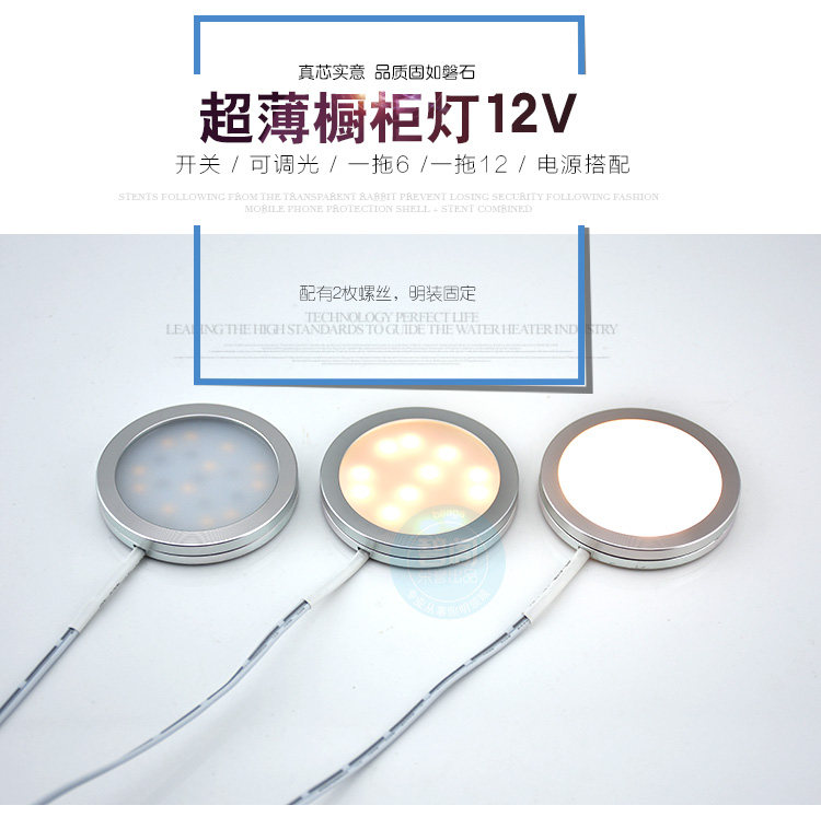 超薄led橱柜灯12V明装展柜吊衣柜书柜酒柜内底厨房灯节能筒灯2.5W推广热卖行情