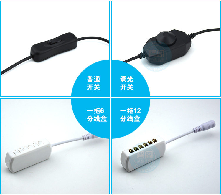 • 颜色分类:测出线12V正白光测出线12V暖白光背出线12V正白光背出线12V暖白光6口分线盒12口分线盒A电源适合一拖六B电源适合一拖六C电源适合一拖十二普通开关调光开关1个灯+1个驱动(接220v)RF射频遥控调光器2个灯+1个驱动(接220v)