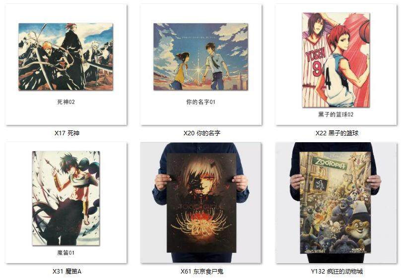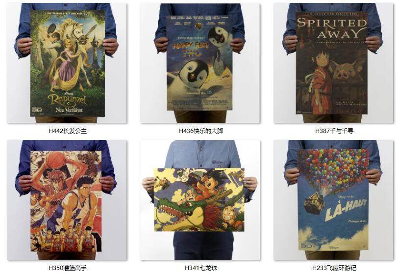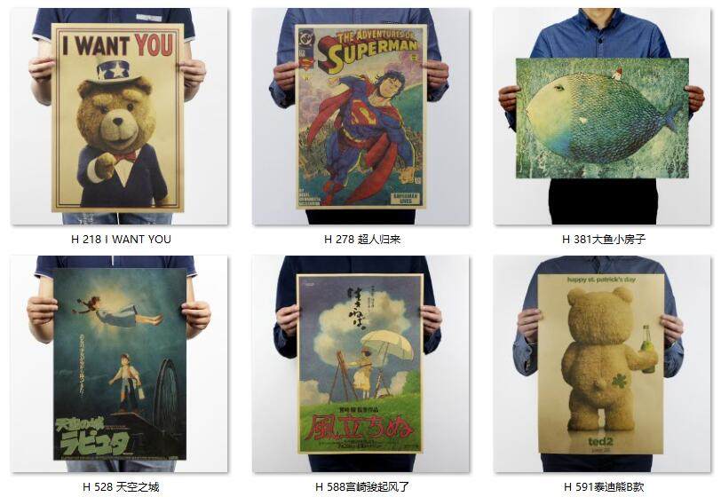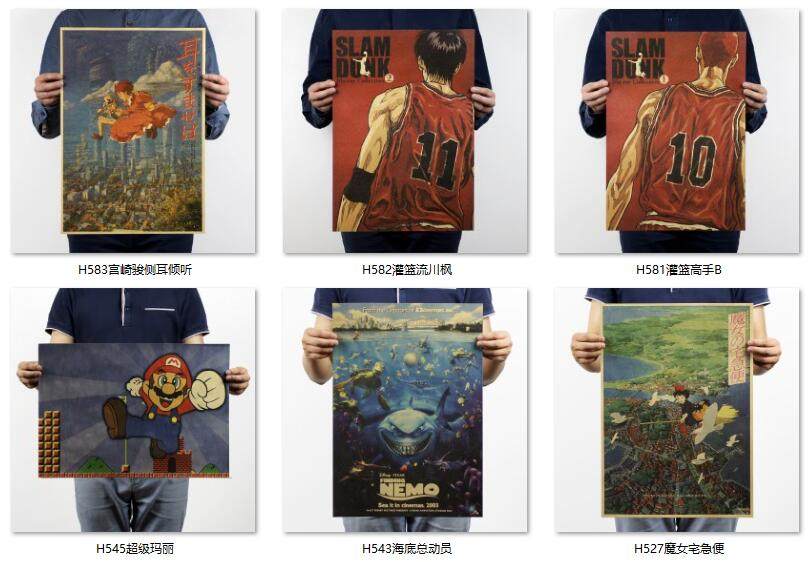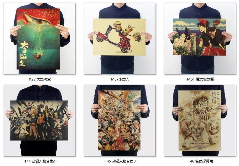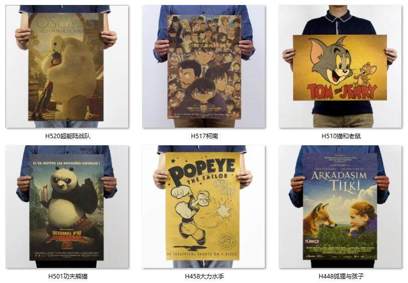 經典動漫卡通海報 88款 復古牛皮紙海報 兒時回憶 臥室宿舍裝飾畫推廣熱賣行情