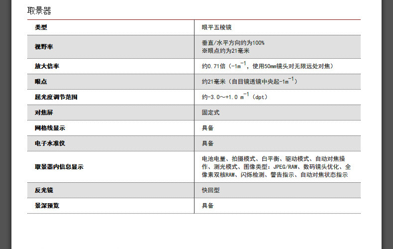 - 取景器類型:光學(xué)取景器