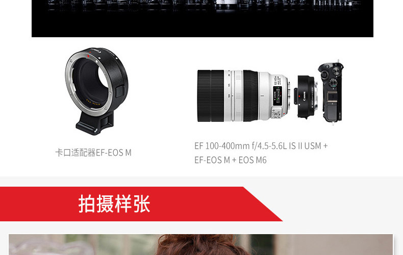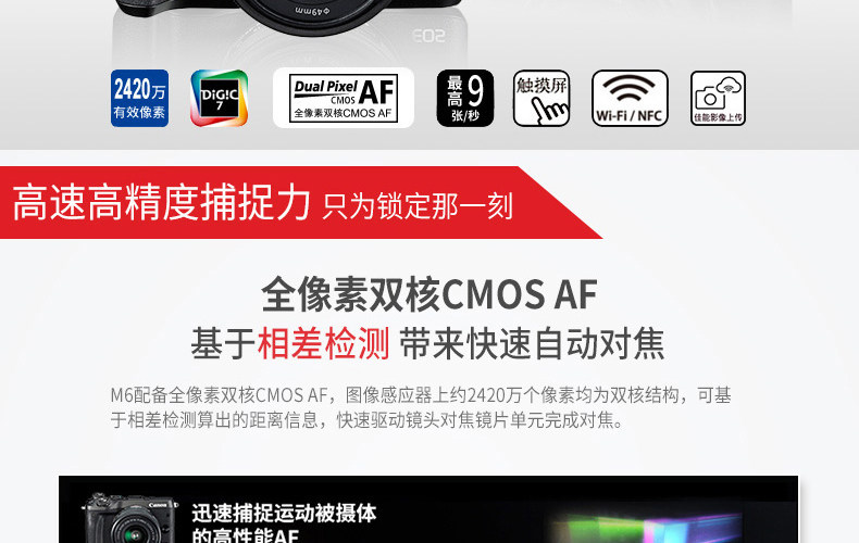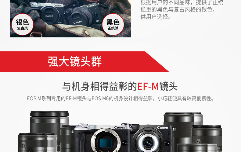 - 顏色分類:國行M6單機19批次黑色國行M6單機19批次銀色國行M6單機19批次白色國行M6/15-45套機黑色國行M6/15-45套機銀色國行M6/15-45套機白色國行M6/18-150套機黑色國行M6/18-150套機銀色國行M6/18-150套機白色國行M6+11-22廣角鏡頭國行M6+28/3.5微距鏡頭國行M6+22/2定焦鏡頭國行M6+佳能EF-EOS轉(zhuǎn)接環(huán)
