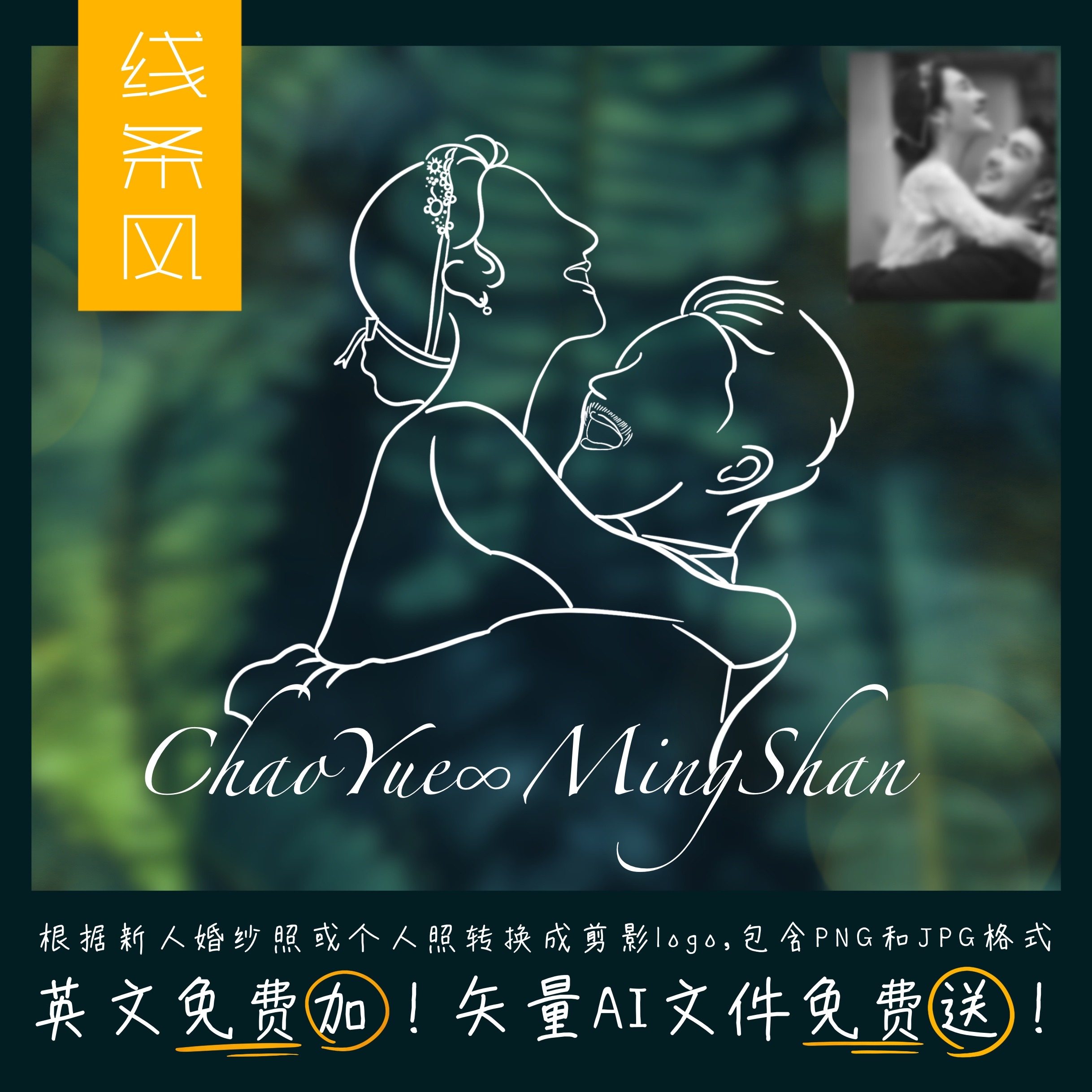 婚禮logo個性定制情侶設(shè)計剪影頭像私人簡約極簡標(biāo)志線條簡筆畫
