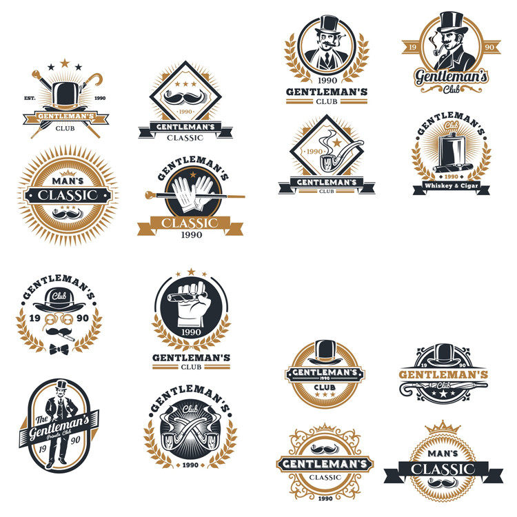A0062男士用品LOGO標(biāo)志煙斗帽子胡須復(fù)古手繪EPS設(shè)計(jì)素材AI矢量圖