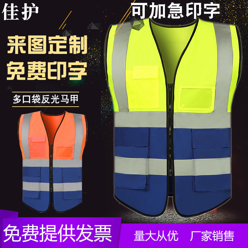 反光背心工地施工人建筑安全馬甲環(huán)衛(wèi)交通騎行夜間發(fā)光服免費印字