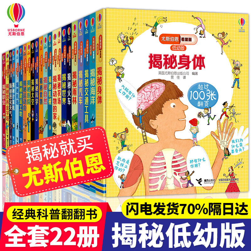 尤斯伯恩看里面揭秘系列低幼版全套22冊兒童翻翻書3-4-5-6歲少幼兒3d版立體書身體海洋自然交通工具汽車火車太空世界建筑工地科學(xué)