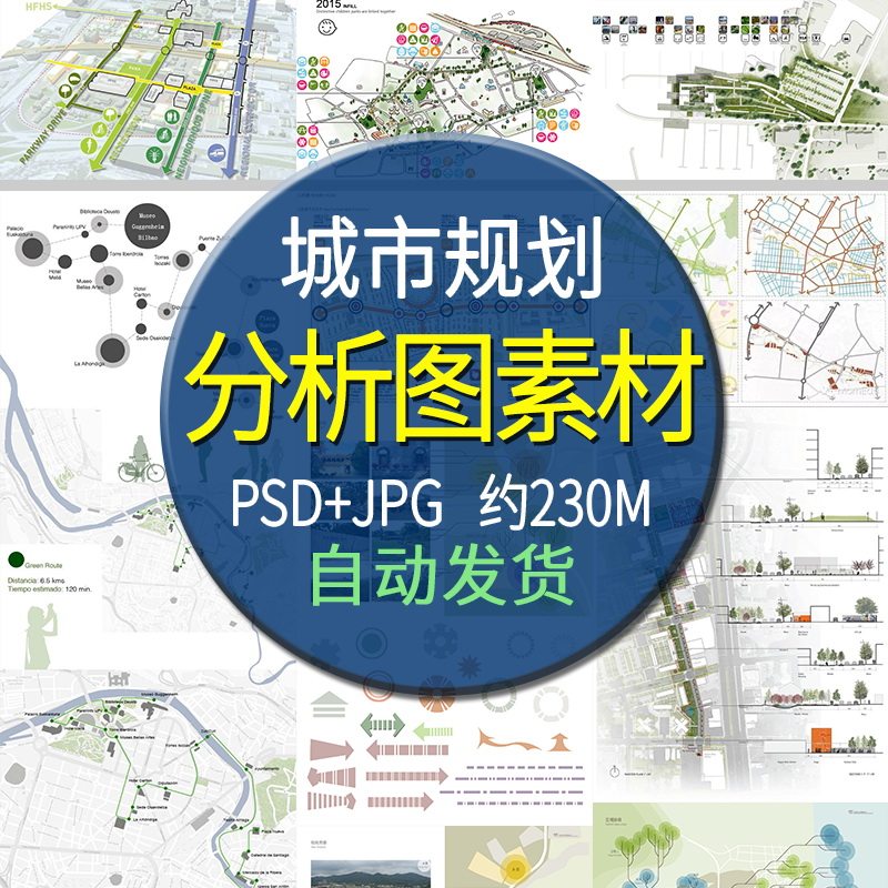 建筑城市規(guī)劃設(shè)計(jì)景觀常用分析圖素材 頭圖標(biāo)色卡交通PSD源文件