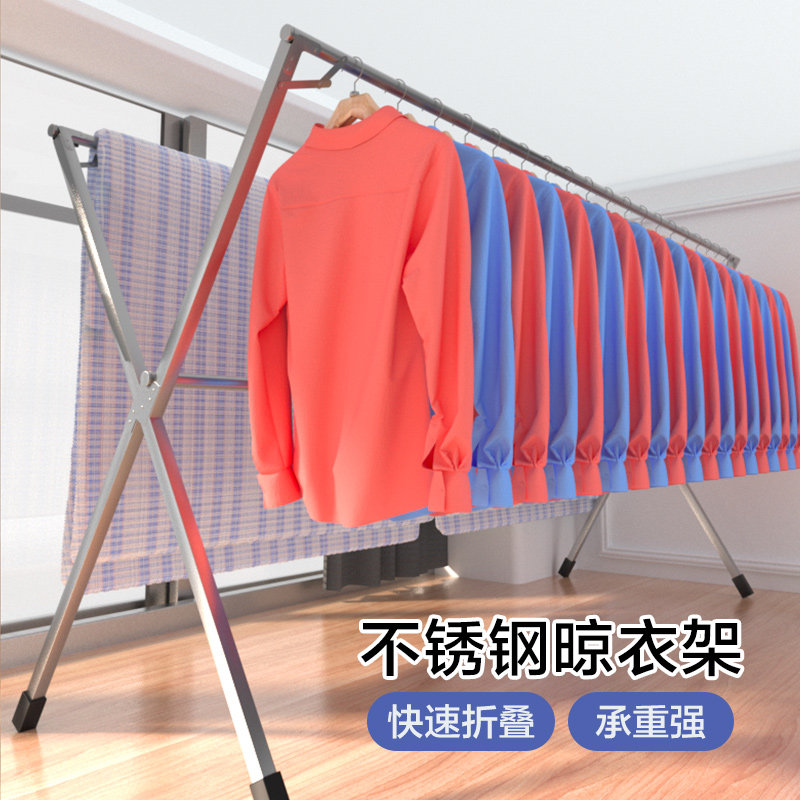 居家家晾衣架落地折疊室內(nèi)家用陽臺(tái)室外不銹鋼伸縮式桿曬被子神器
