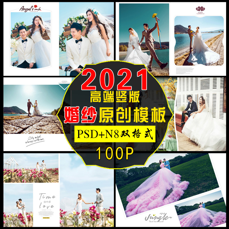 N8-28影樓婚紗照相冊N8PSD模板版旅拍沛PS設(shè)計后期素材2021豎版