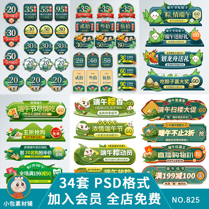 端午節(jié)促銷標(biāo)簽淘寶天貓電商活動優(yōu)惠券節(jié)日icon打折PSD設(shè)計素材