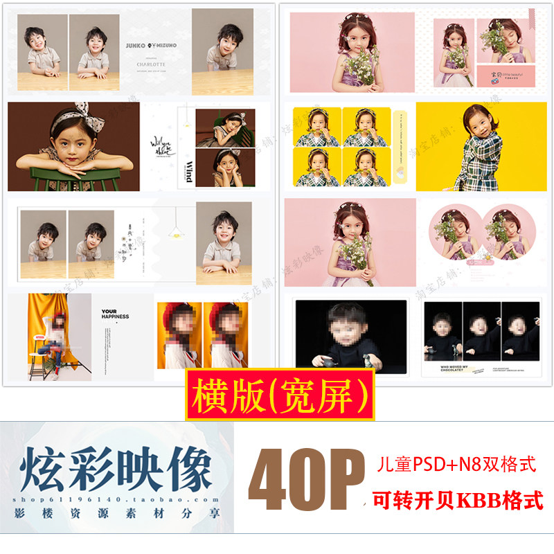 E75原創(chuàng)兒童PSD潮童時尚N8模板2021新影樓寬屏長條橫板相冊ps素材