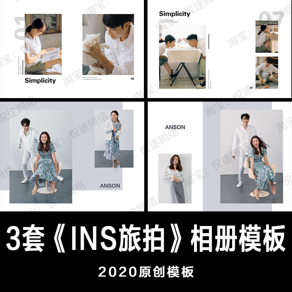 INS城市旅拍2020婚紗情侶PSD相冊模板素材影樓設計沛 E069