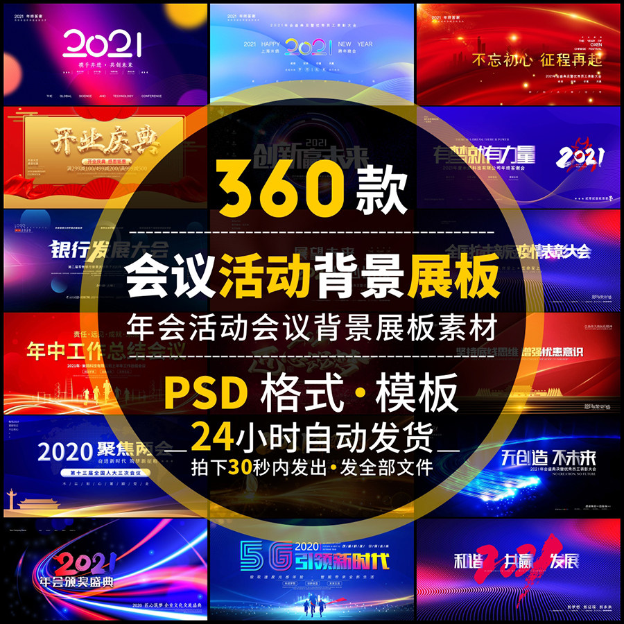 2021公司企業(yè)科技會議年會舞臺背景展板模板活動頒獎psd設計素材