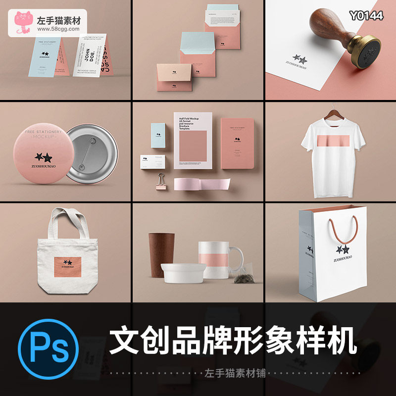 品牌VI智能貼圖樣機文創(chuàng)辦公用品袋子展示效果圖標志應用PSD素材