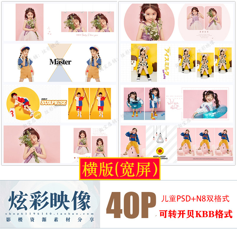 E74原創(chuàng)兒童PSD潮童時尚N8模板2021新影樓寬屏長條橫板相冊ps素材