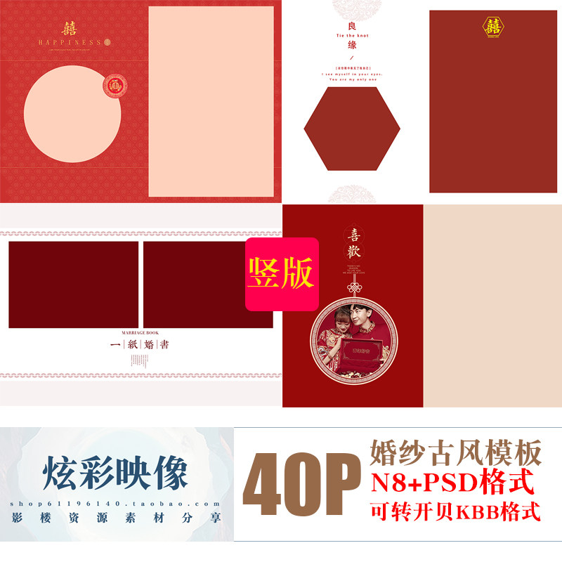 H40秀禾2021古風PSD相冊N8模板中式古裝影樓相冊沛設計素材豎版