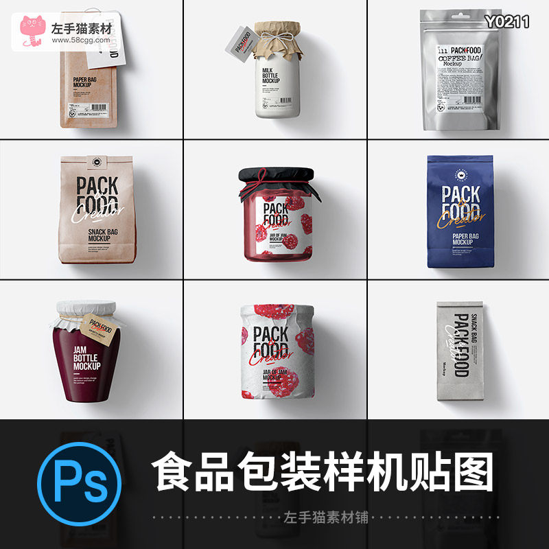 零食鏤空包裝袋食品玻璃瓶子文創(chuàng)特產(chǎn)罐子保鮮盒樣機(jī)PSD貼圖素材