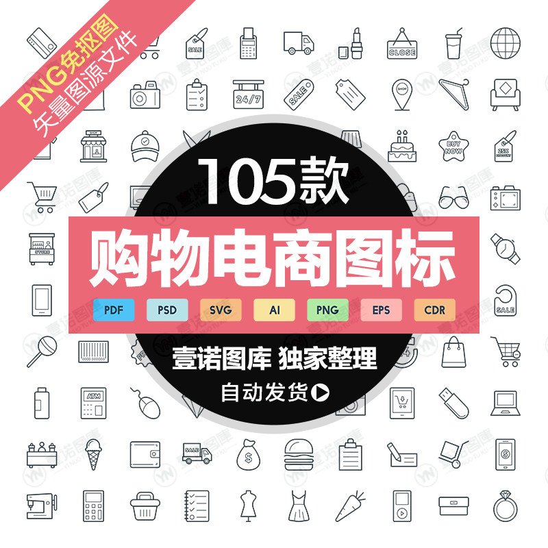 PNG購物電商超市商城商場網(wǎng)購AI矢量ICON線條圖標(biāo)UI設(shè)計素材模板