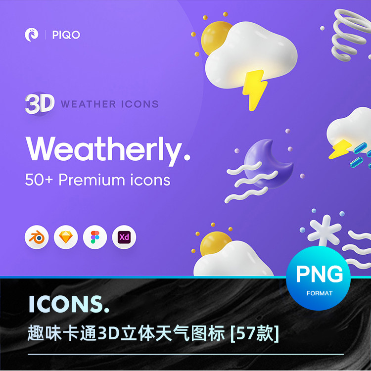 57款趣味卡通3D立體天氣象Icon圖標(biāo)UI設(shè)計sketch源文件PNG素材