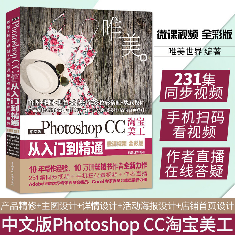 ps教程書籍 Photoshop CC 淘寶美工從入門到精通 全彩版 ps書籍完全自學(xué)零基礎(chǔ)摳圖調(diào)色修圖色彩搭配圖片處理平面設(shè)計(jì)軟件教材