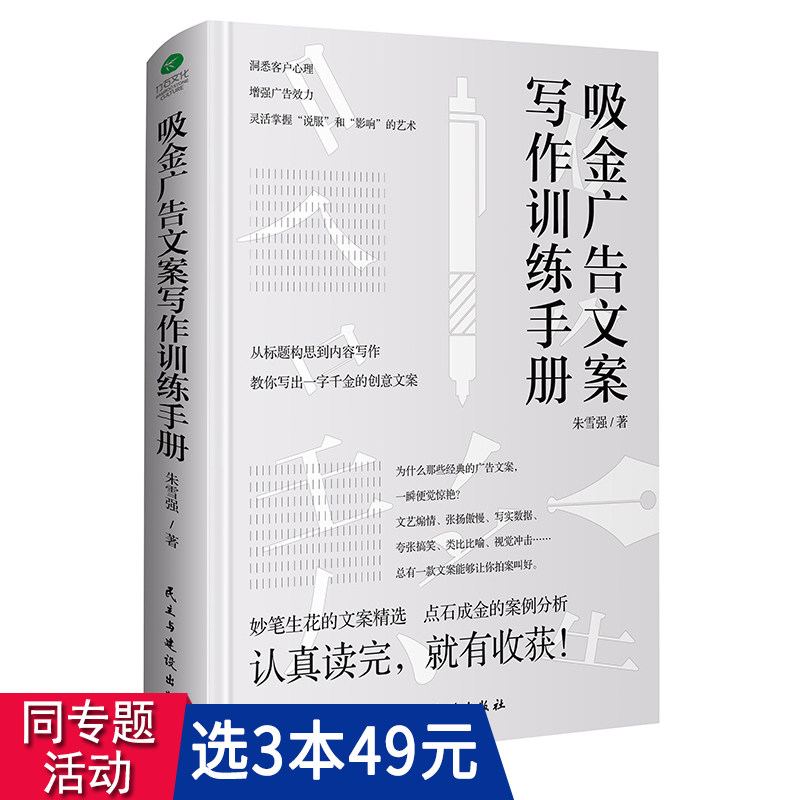 【3本49包郵】吸金廣告文案寫作訓(xùn)練手冊 朱雪強//廣告文案策劃互聯(lián)網(wǎng)軟文營銷廣告設(shè)計市場營銷學(xué) 走心文案設(shè)計策劃廣告文案書籍