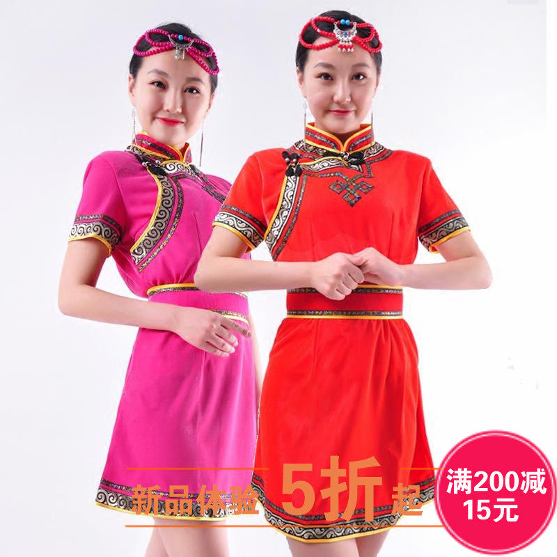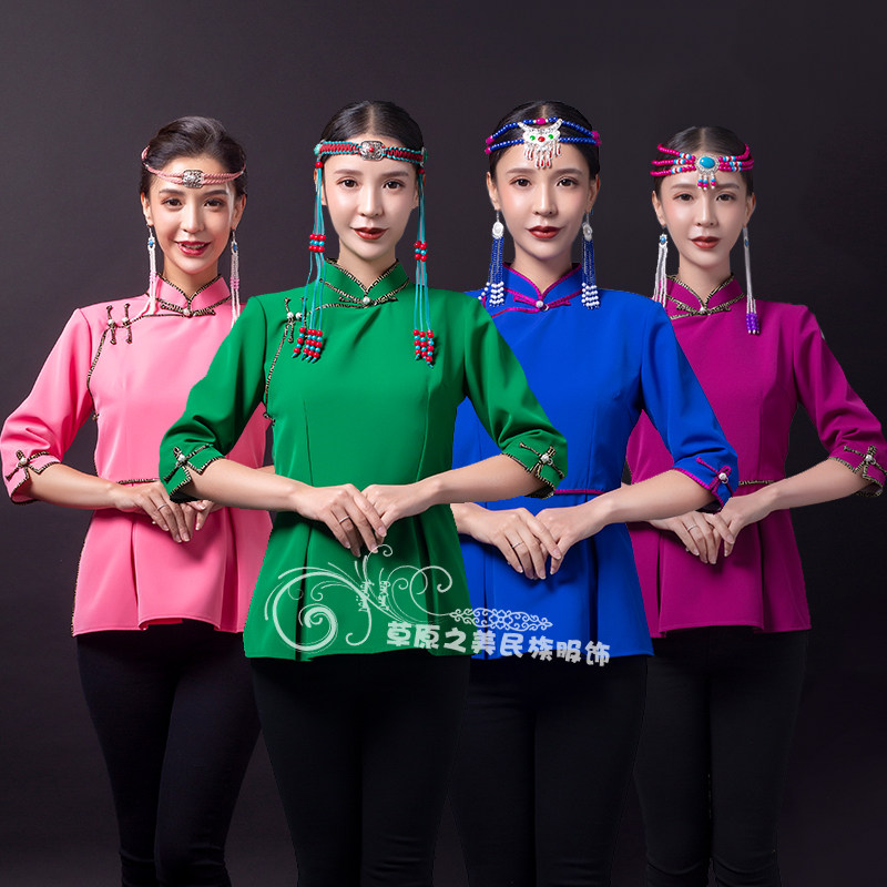 女士蒙古袍短袖半袖 蒙古族演出舞蹈服裝女日常生活裝 蒙餐服務員