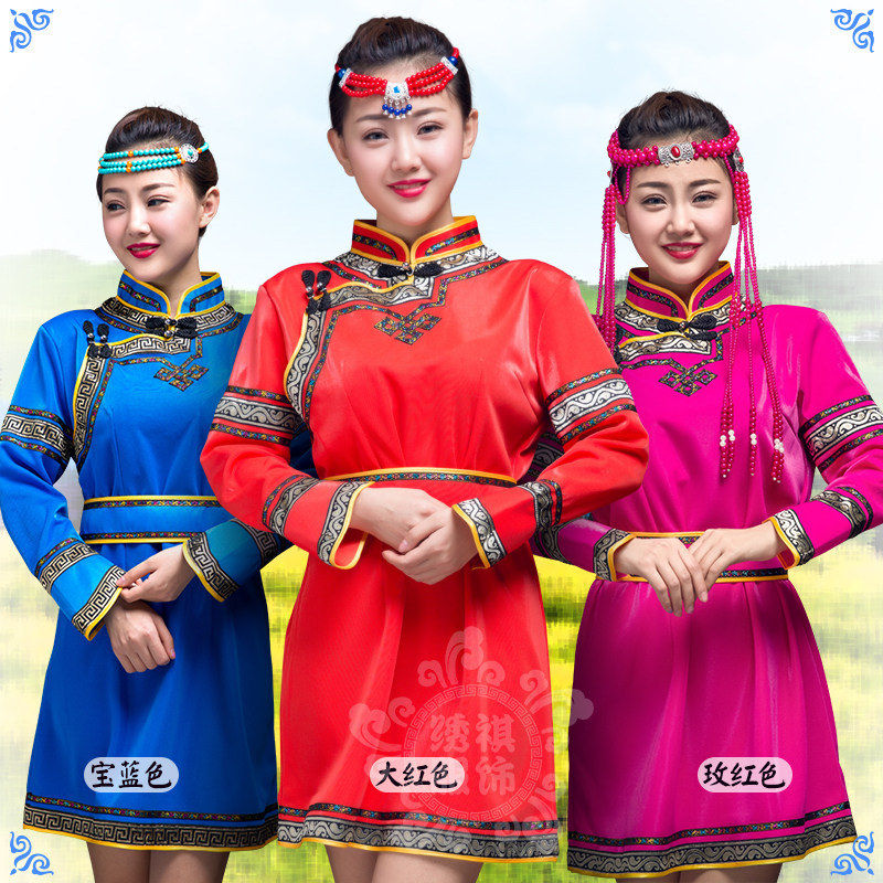 女士蒙古袍日常生活裝蒙古族舞蹈演出服裝女成人蒙餐服務員工作服