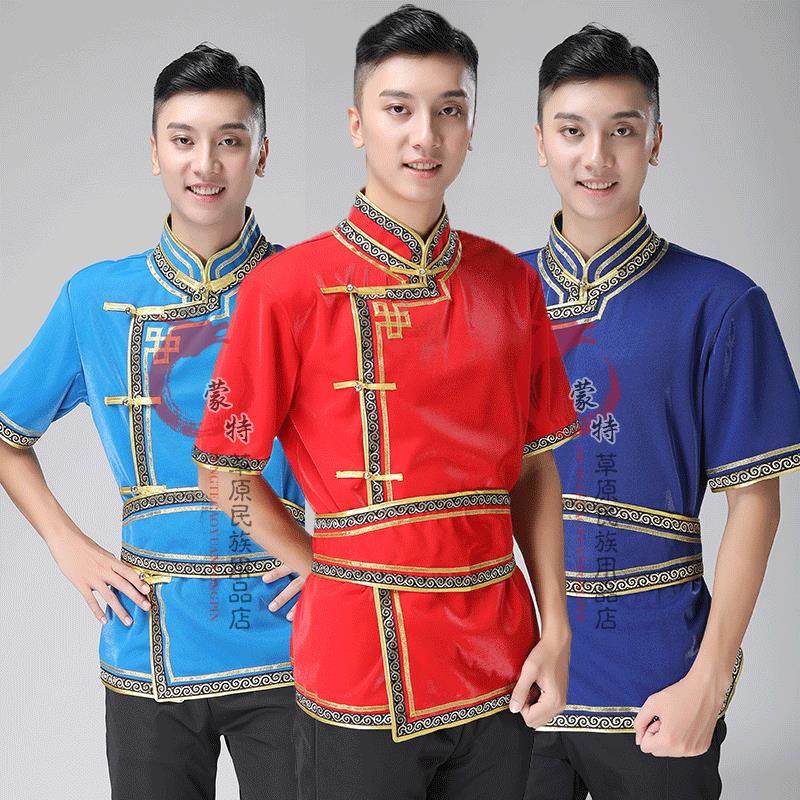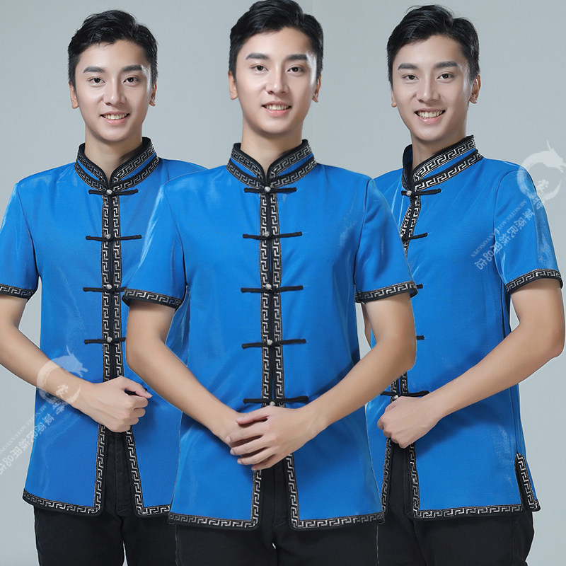 新款短袖蒙古族餐廳男士蒙古袍上衣服裝生活裝日常裝蒙服務工作服