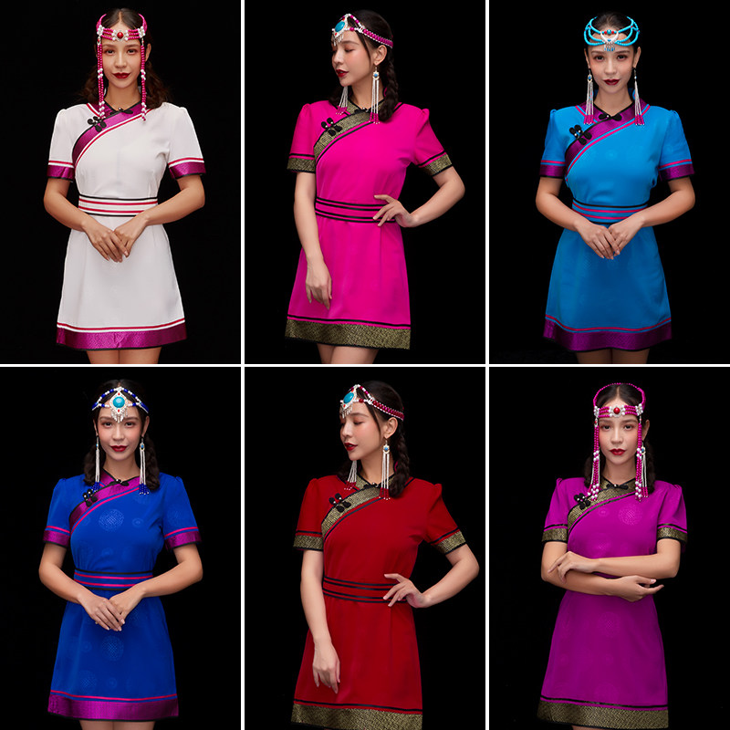 新款蒙古族女士蒙古袍日常生活裝蒙古舞舞臺演出服短款服務員服裝