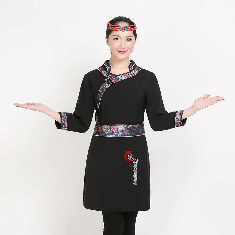 2018新款女士蒙古袍 蒙古族特色飯店服務(wù)員服裝工裝生活裝可定做