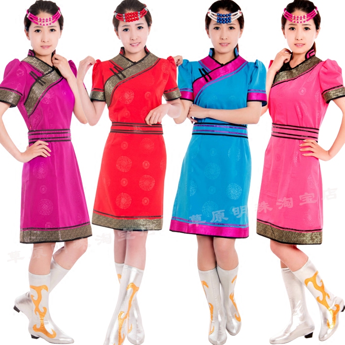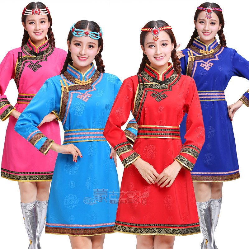 女士蒙古袍蒙古族日常生活裝舞蹈演出服裝女蒙餐服務(wù)員工服迎賓服
