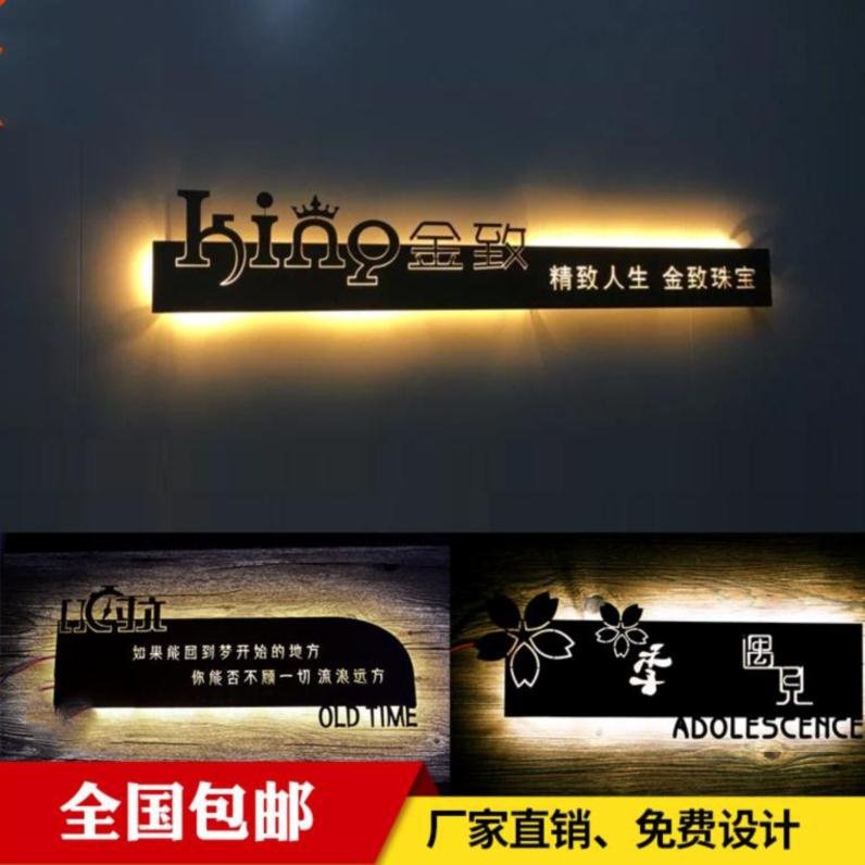 箱廣告牌發(fā)光發(fā)光門。定制設(shè)計(jì)招牌頭門字木紋頭燈不銹鋼貼設(shè)計(jì)。