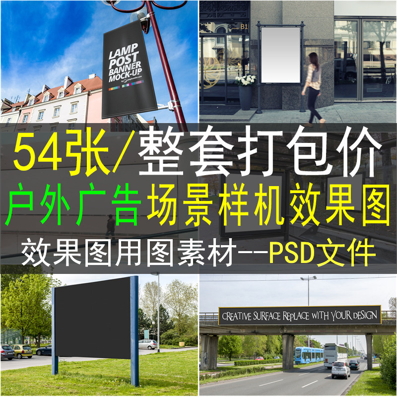 城市戶外場(chǎng)景廣告牌燈箱招牌效果圖VI樣機(jī)PS模板 PSD貼圖設(shè)計(jì)素材