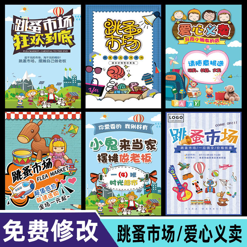 幼兒園小學(xué)生跳蚤市場愛心義賣宣傳海報廣告牌設(shè)計攤位裝飾貼紙