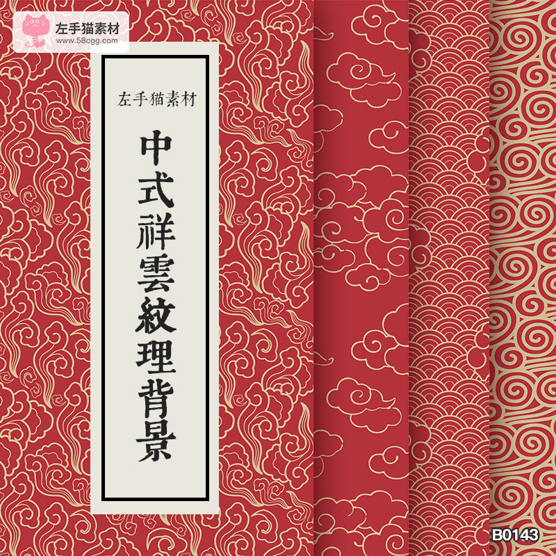 中國風古典喜慶祥云圖案紋理底紋連續(xù)背景AI矢量平面包裝設計素材