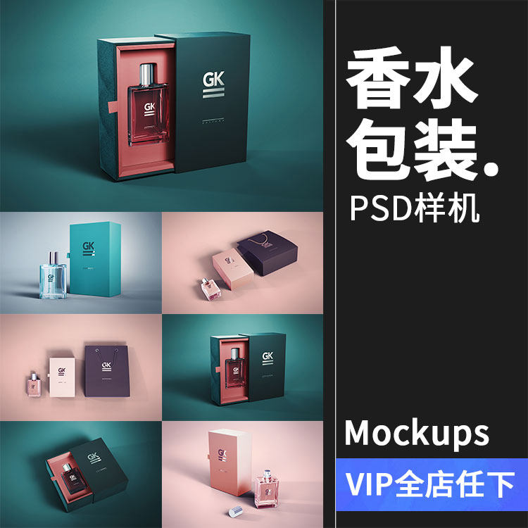 精裝香水品牌禮盒禮物包裝盒玻璃瓶子PSD模板貼圖樣機(jī)PS設(shè)計(jì)素材