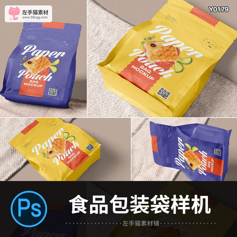 餅干零食果干食品密封包裝袋樣機(jī)效果圖展示PSD智能貼圖設(shè)計(jì)素材