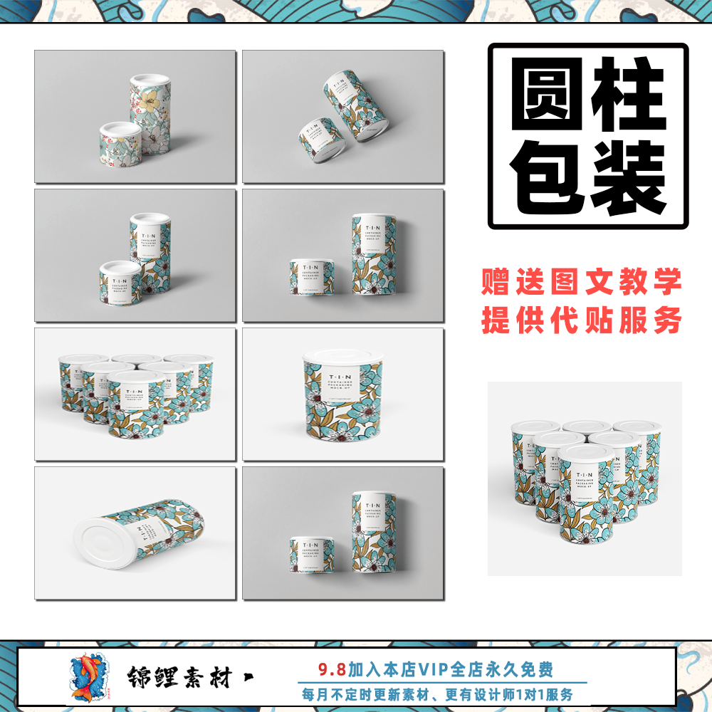 高端茶葉薯片圓筒柱紙管包裝盒設(shè)計(jì)展示模型PS智能貼圖樣機(jī)模板