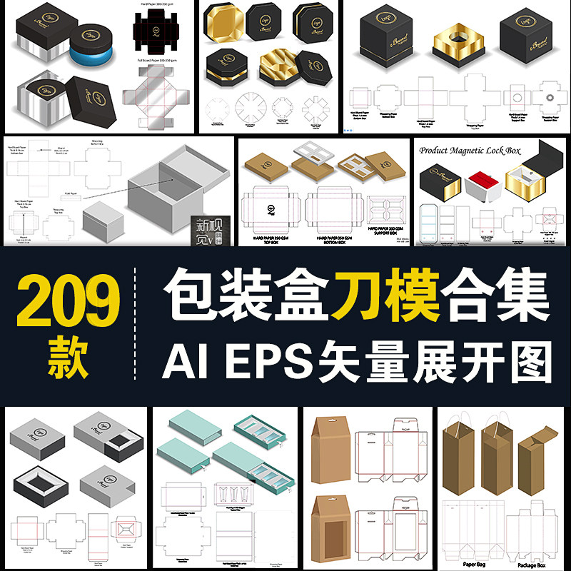 包裝盒平面展開圖結(jié)構(gòu)刀模圖禮盒抽盒手飾盒化妝品AI矢量設(shè)計(jì)素材